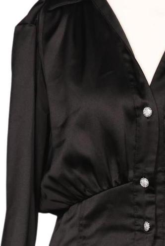 | Details | Satin, Langarm, V-Ausschnitt, Front Knopfleiste, Einfarbig |
