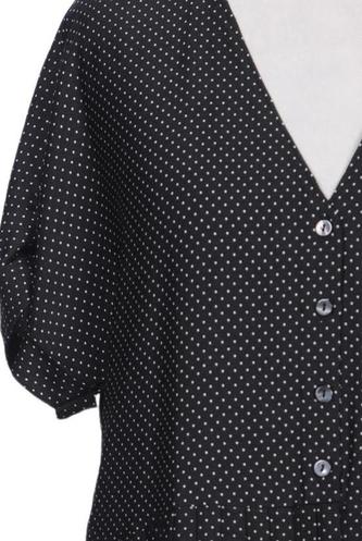 | Details | Plissee, Kurzarm, V-Ausschnitt, Front Knopfleiste, Punkte |