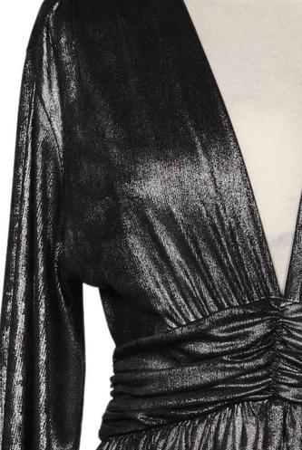 | Details | Satin, Plissee, metallic, Langarm, V-Ausschnitt, Einfarbig |