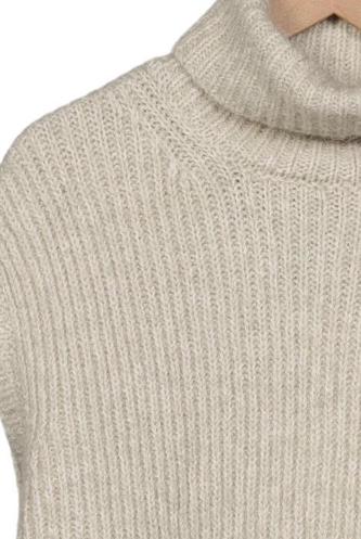 | Details | Grobstrick, ärmellos, Rollkragen, Einfarbig |