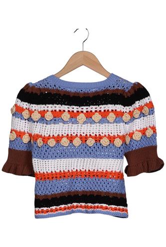 | Details | Gehäkelt, Grobstrick, Kurzarm, Rundhals, Streifen |