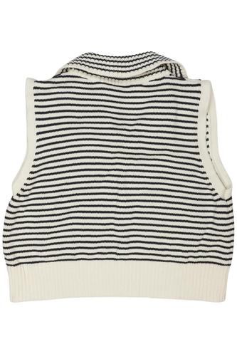 | Details | Grobstrick, ärmellos, V-Ausschnitt, Streifen |
