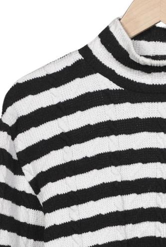 | Details | Grobstrick, Langarm, Rollkragen, Streifen |