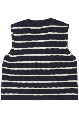 | Details | Grobstrick, ärmellos, V-Ausschnitt, Streifen |