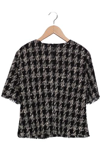 | Details | Fransen, Grobstrick, Kurzarm, Rundhals, Hahnentritt |
