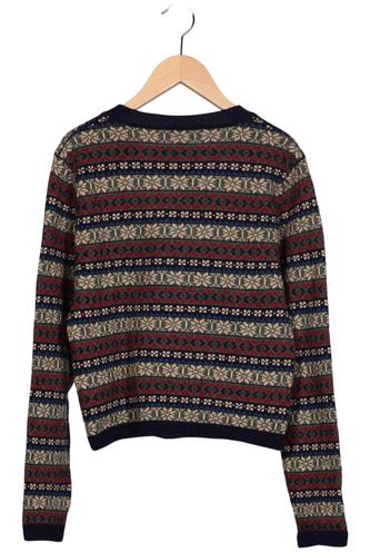 | Details | Grobstrick, Langarm, Rundhals, Front Knopfleiste, Ethno, Streifen |