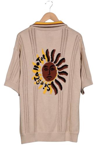 | Details | Grobstrick, V-Ausschnitt, Motivprint |