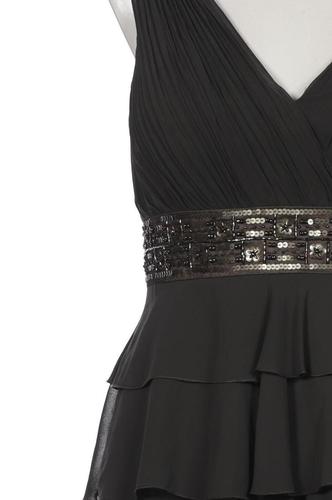 | Details | Rüschen, Chiffon, ärmellos, Bindegürtel, V-Ausschnitt, Seitreißverschluss, Einfarbig |