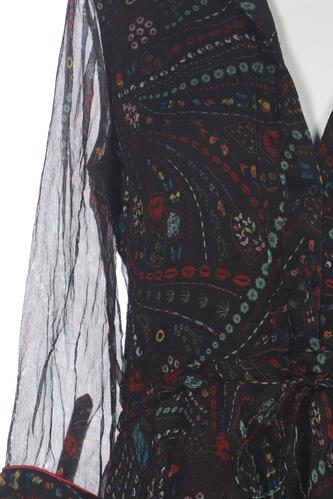 | Details | Rüschen, Chiffon, Dreiviertelarm, V-Ausschnitt, Floral |