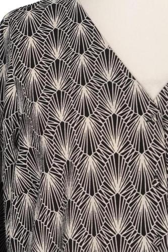 | Details | Chiffon, Langarm, V-Ausschnitt, verschlusslos, Motivprint |