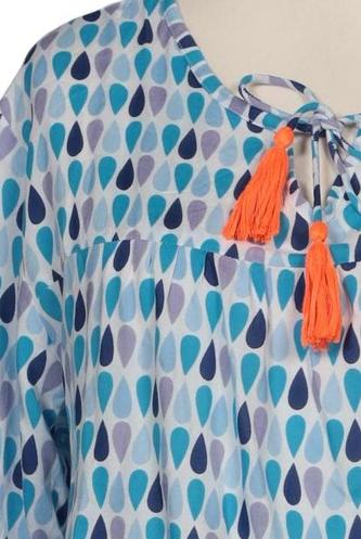 | Details | Fransen, Chiffon, Langarm, Rundhals, verschlusslos, Motivprint |