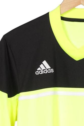 | Details | Jersey, V-Ausschnitt, Markenlogo, Streifen |