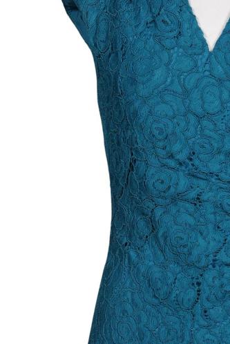 | Details | Spitze, Kurzarm, V-Ausschnitt, Reißverschluss/Knöpfe hinten, Floral |