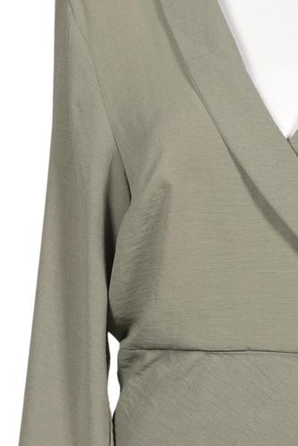 | Details | Satin, Langarm, Bindegürtel, Wickeloptik, V-Ausschnitt, Einfarbig |