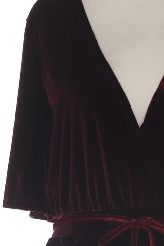 | Details | Samt, Kurzarm, Bindegürtel, V-Ausschnitt, Einfarbig |