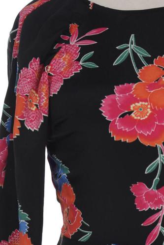 | Details | Satin, Blüten, Langarm, Rundhals, Reißverschluss/Knöpfe hinten |