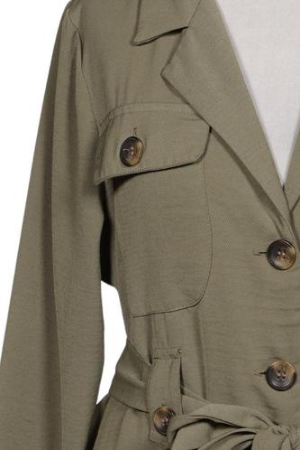 | Details | Langarm, Bindegürtel, V-Ausschnitt, Front Knopfleiste, Einfarbig |