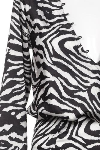 | Details | Satin, Langarm, V-Ausschnitt, Reißverschluss/Knöpfe hinten |
