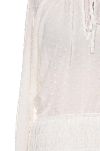 | Details | Rüschen, Chiffon, Langarm, V-Ausschnitt, Gummizug/Tunnelzug, Punkte |
