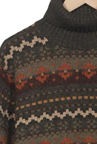 | Details | Grobstrick, Langarm, Rollkragen, Ethno |
