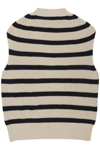 | Details | Grobstrick, ärmellos, V-Ausschnitt, Streifen |