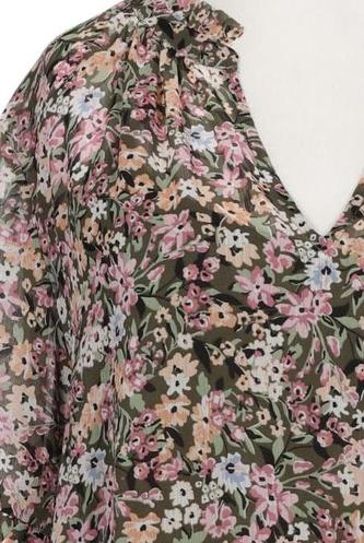 | Details | Rüschen, Chiffon, Langarm, V-Ausschnitt, verschlusslos, Floral |