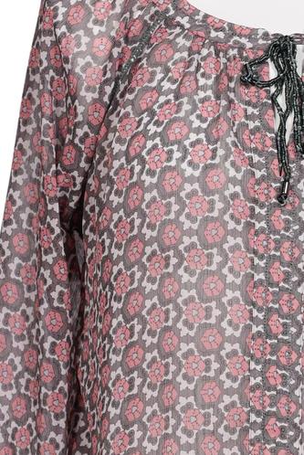 | Details | Chiffon, Dreiviertelarm, Rundhals, verschlusslos, Floral |
