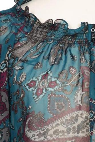 | Details | Rüschen, Chiffon, Dreiviertelarm, V-Ausschnitt, verschlusslos, Gummizug/Tunnelzug |