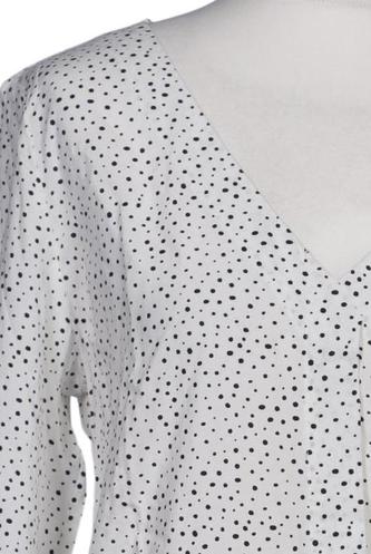 | Details | Jersey, Langarm, V-Ausschnitt, verschlusslos, Punkte |