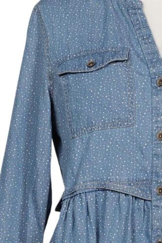| Details | Jeans, Langarm, Bindegürtel, V-Ausschnitt, Front Knopfleiste, Einfarbig |