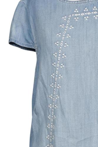 | Details | Jeans, Stickerei, Kurzarm, Rundhals, Reißverschluss/Knöpfe hinten, Einfarbig |