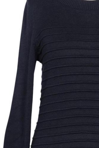 | Details | Grobstrick, Langarm, Rundhals, Reißverschluss/Knöpfe hinten, Streifen |