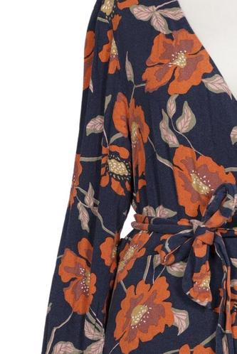 | Details | Jersey, Langarm, Bindegürtel, Wickeloptik, V-Ausschnitt, Floral |