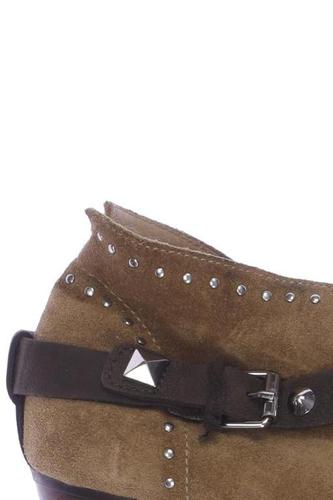 | Details | Wildlederoptik, Schnürung, Metall, Stollen |