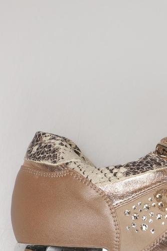 | Details | Wildlederoptik, Schnürung, Metall, Gummi, metallic, Stollen, Motivprint |