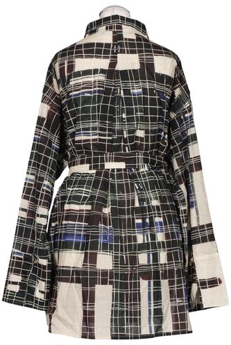 | Details | Langarm, Bindegürtel, Rundhals, Front Knopfleiste, Kariert |