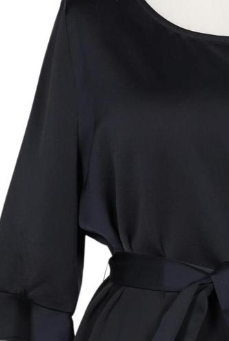 | Details | Satin, Rüschen, Dreiviertelarm, Bindegürtel, Rundhals, Einfarbig |