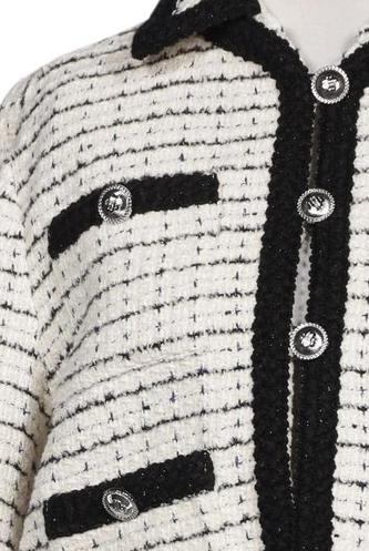 | Details | Grobstrick, Langarm, Rundhals, Front Knopfleiste, Hahnentritt |