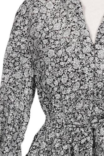 | Details | Langarm, Bindegürtel, V-Ausschnitt, Motivprint |