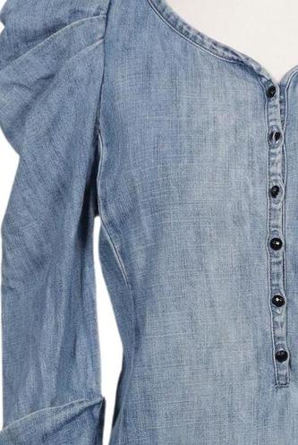 | Details | Jeans, Dreiviertelarm, V-Ausschnitt, Front Knopfleiste, Einfarbig |