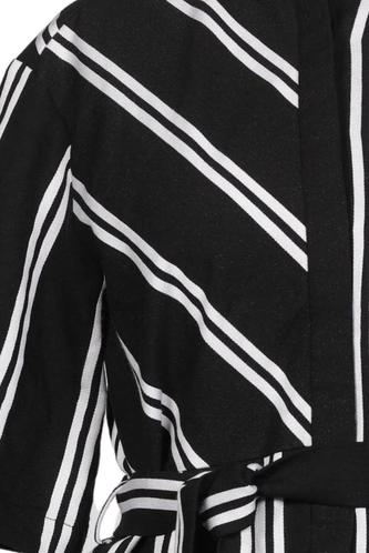 | Details | Kurzarm, Bindegürtel, Rundhals, Front Knopfleiste, Streifen |