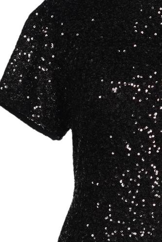 | Details | Pailletten, Kurzarm, Rundhals, Reißverschluss/Knöpfe hinten, Einfarbig |