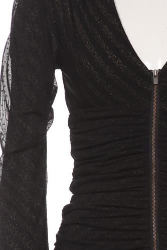 | Details | Rüschen, Tüll, Langarm, V-Ausschnitt, Front Reißverschluss, Einfarbig |
