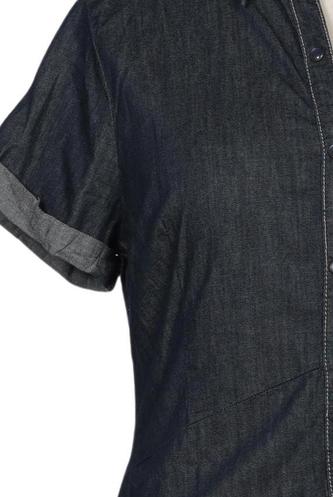 | Details | Jeans, Kurzarm, V-Ausschnitt, Front Knopfleiste, Einfarbig |