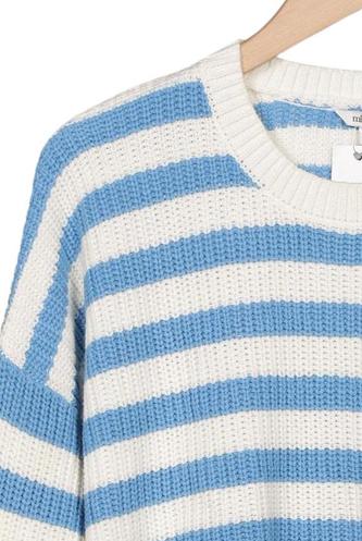 | Details | Grobstrick, Langarm, V-Ausschnitt, Streifen |