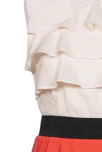 | Details | Rüschen, ärmellos, Bindegürtel, V-Ausschnitt, Reißverschluss/Knöpfe hinten, Einfarbig |