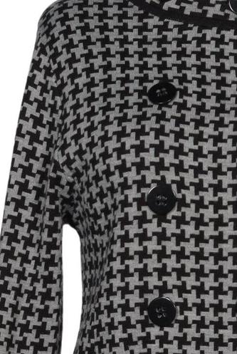| Details | Grobstrick, Langarm, Bindegürtel, Rundhals, Front Knopfleiste, Hahnentritt |