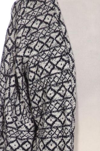 | Details | Grobstrick, Langarm, Dreiviertelarm, V-Ausschnitt, verschlusslos, Rauten |