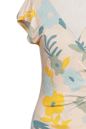 | Details | Jersey, Kurzarm, Wickeloptik, V-Ausschnitt, Floral |