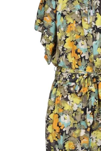 | Details | Jersey, Kurzarm, Bindegürtel, V-Ausschnitt, Floral |